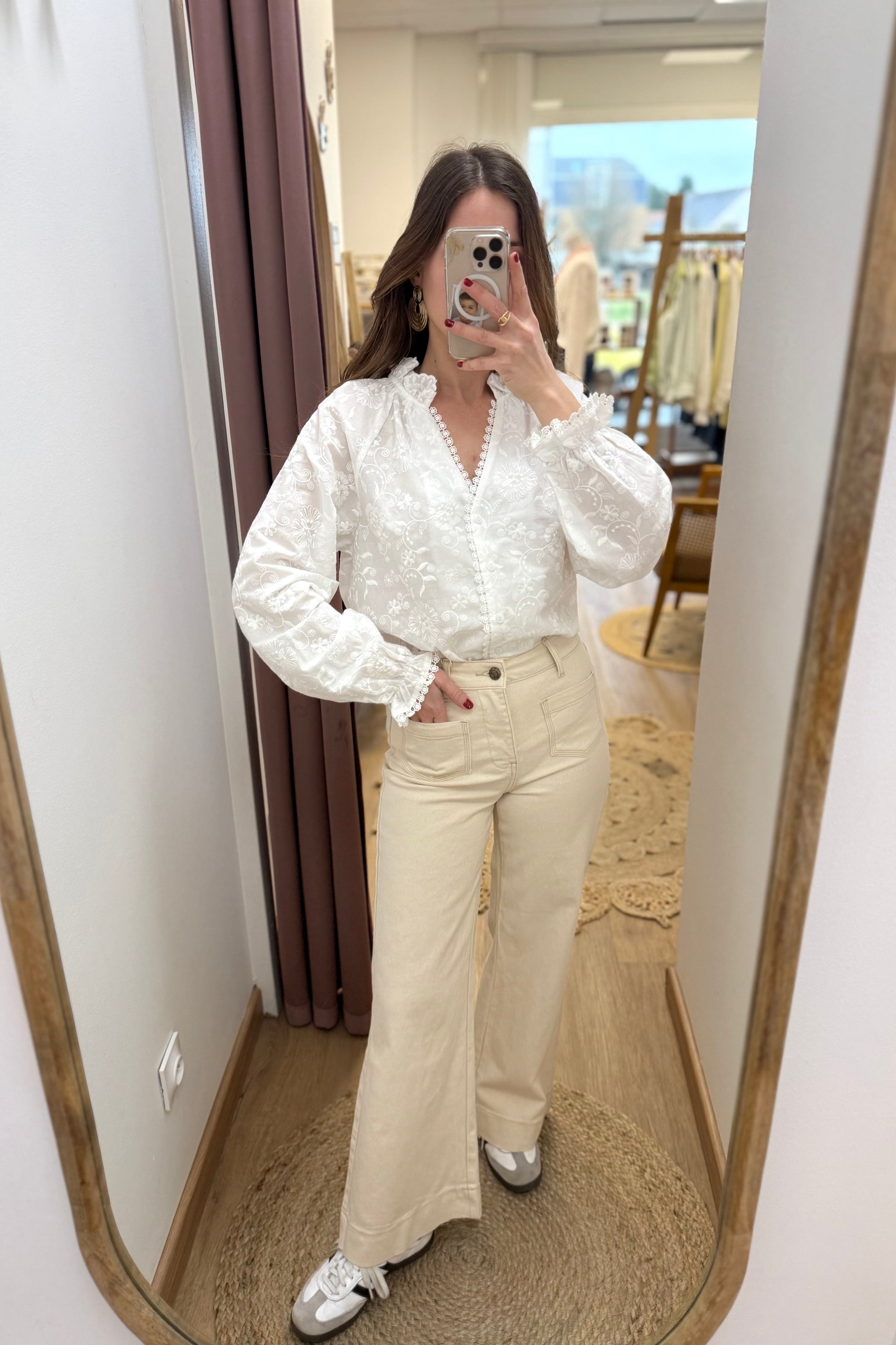 Le jean Gasparette est le parfait mélange du confort et de l'élégance. Ce jean coupe wide, avec sa taille cintrée pour faire ressortir votre silhouette et ses jambes amples pour élancer votre silhouette, apportera un touche de sophistication à vos tenues.