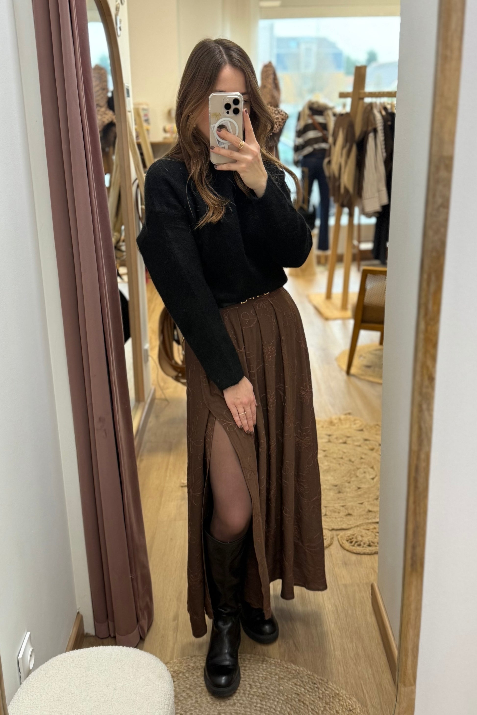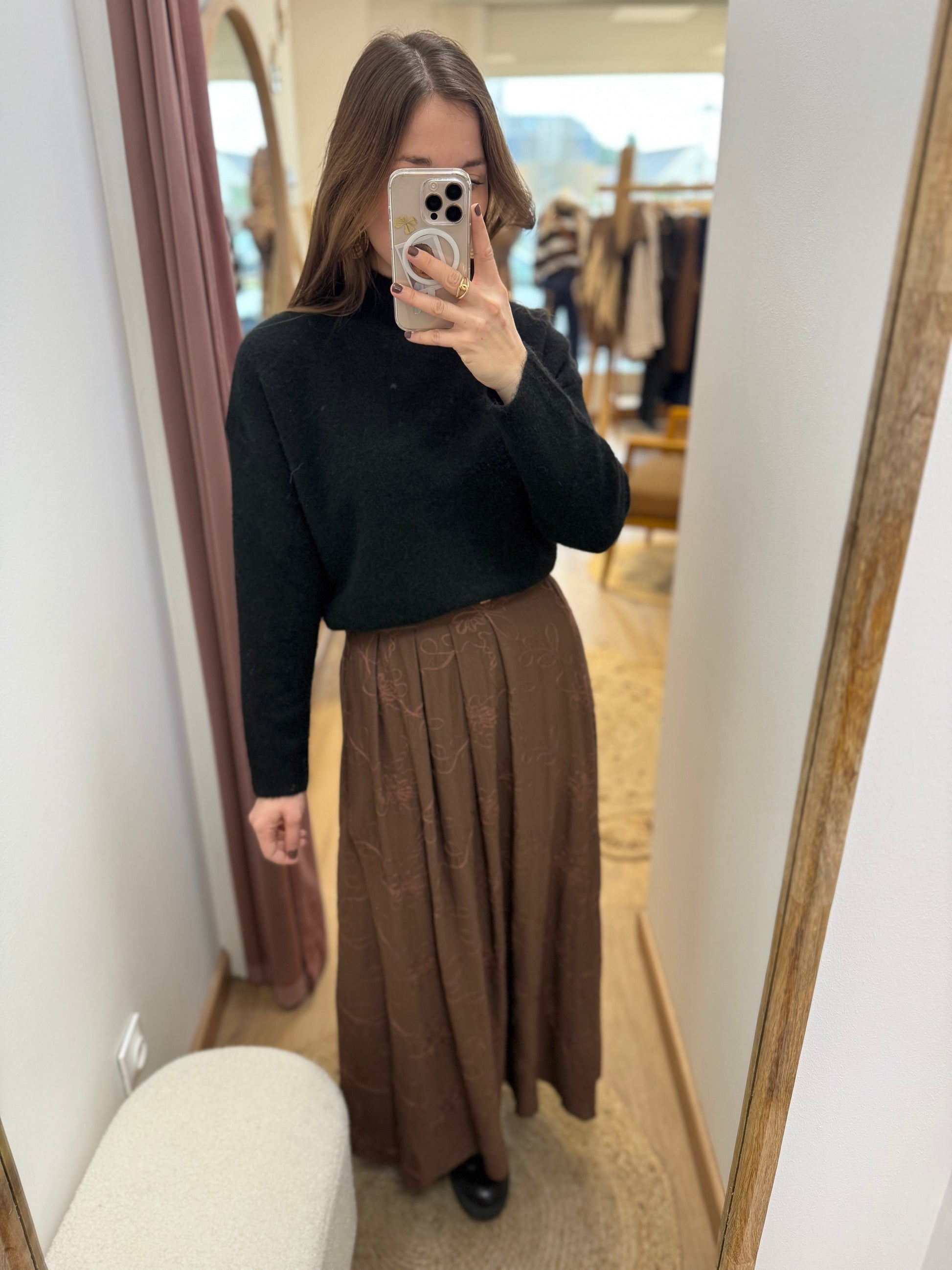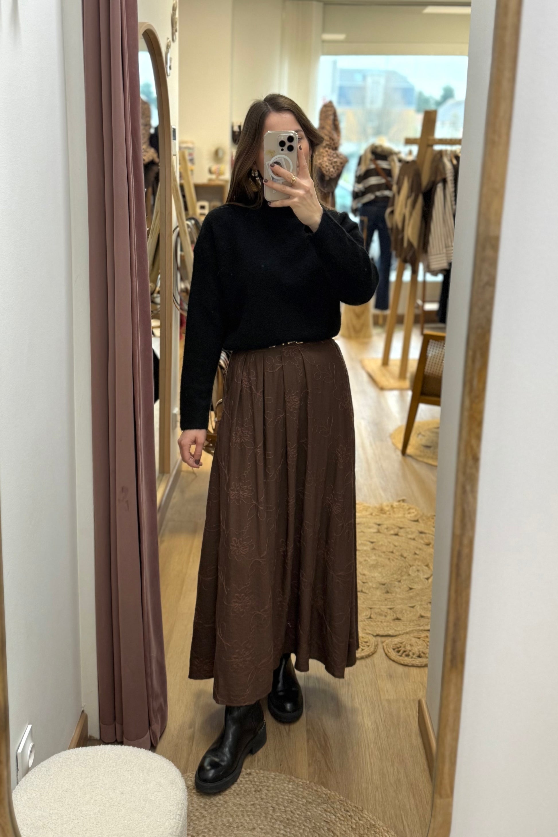 - Jupe marron à broderies