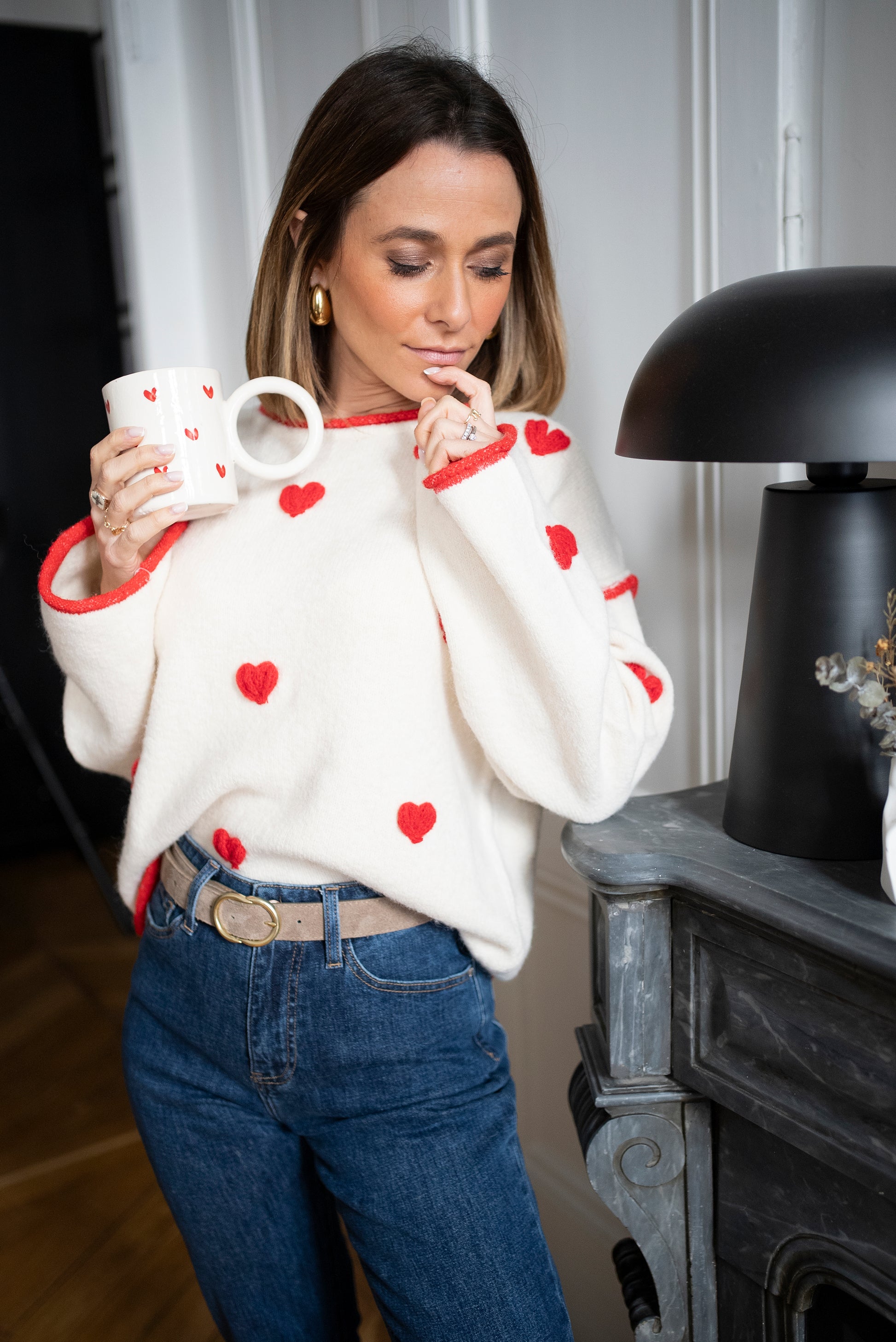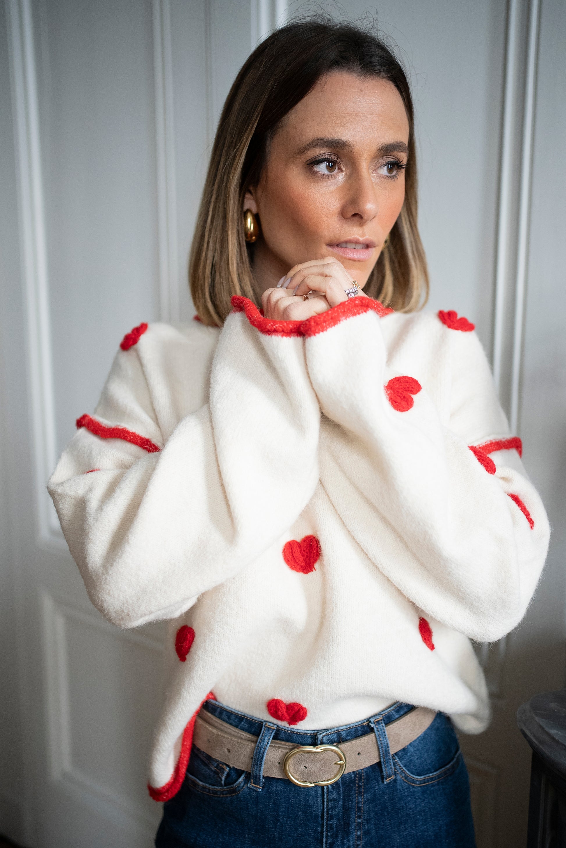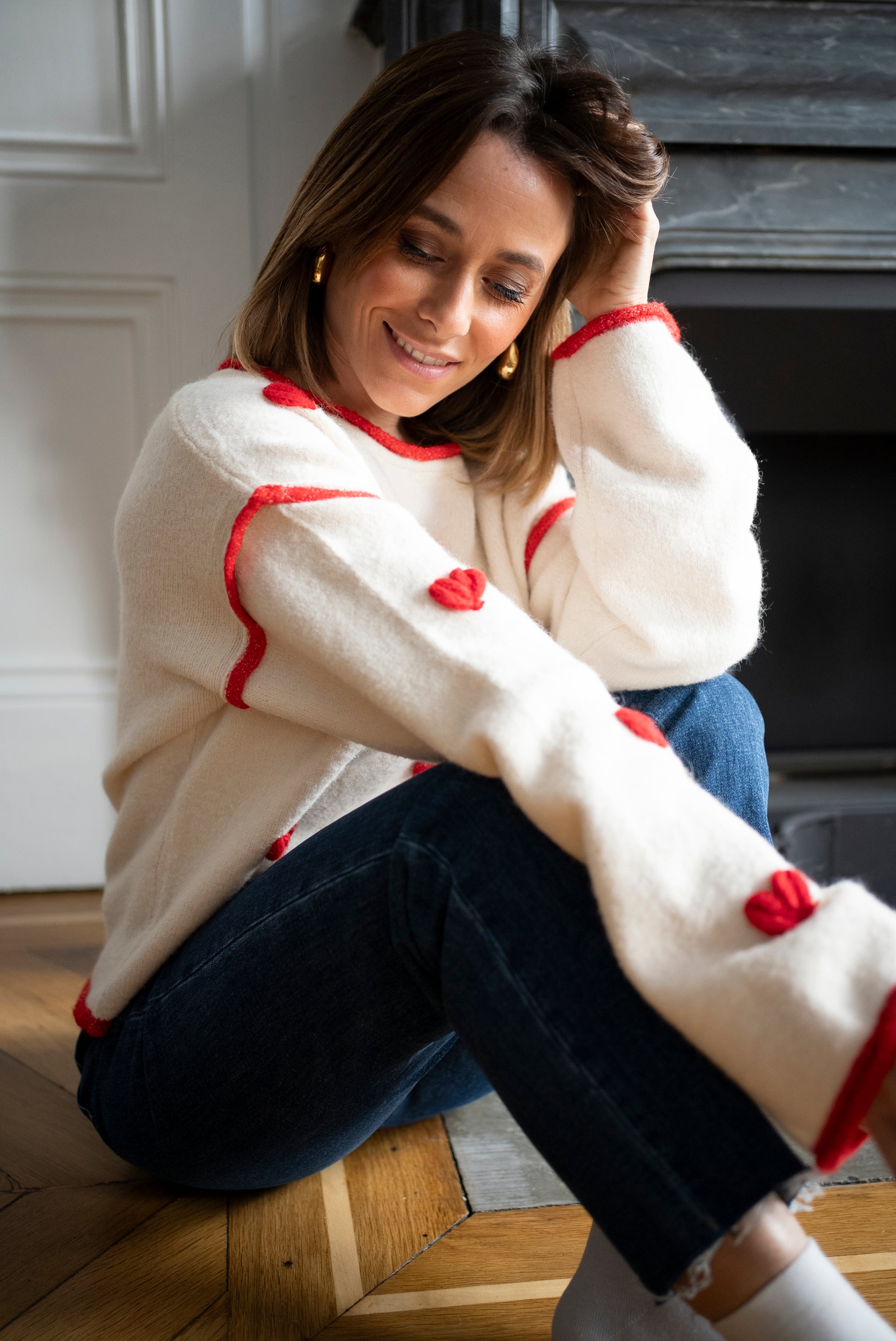- Pull à coeur brodé rouge