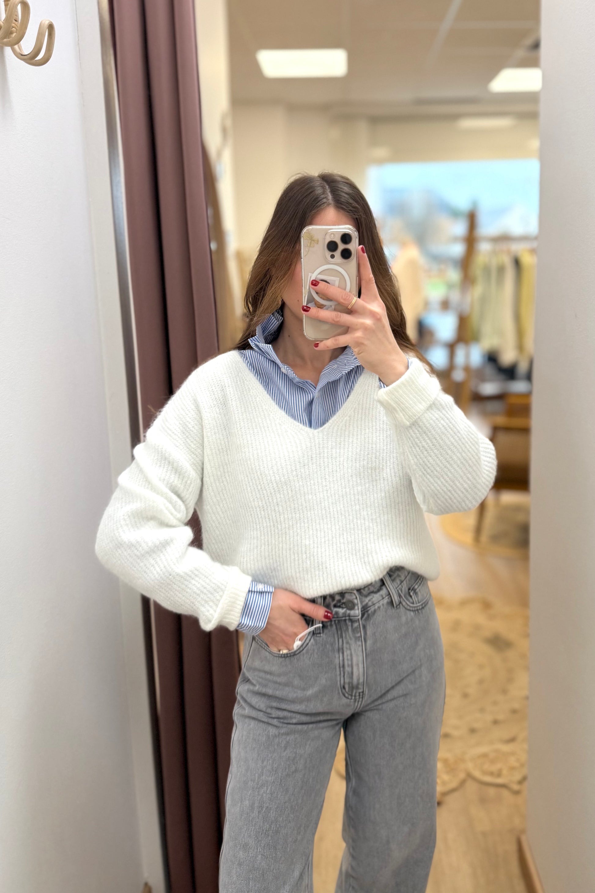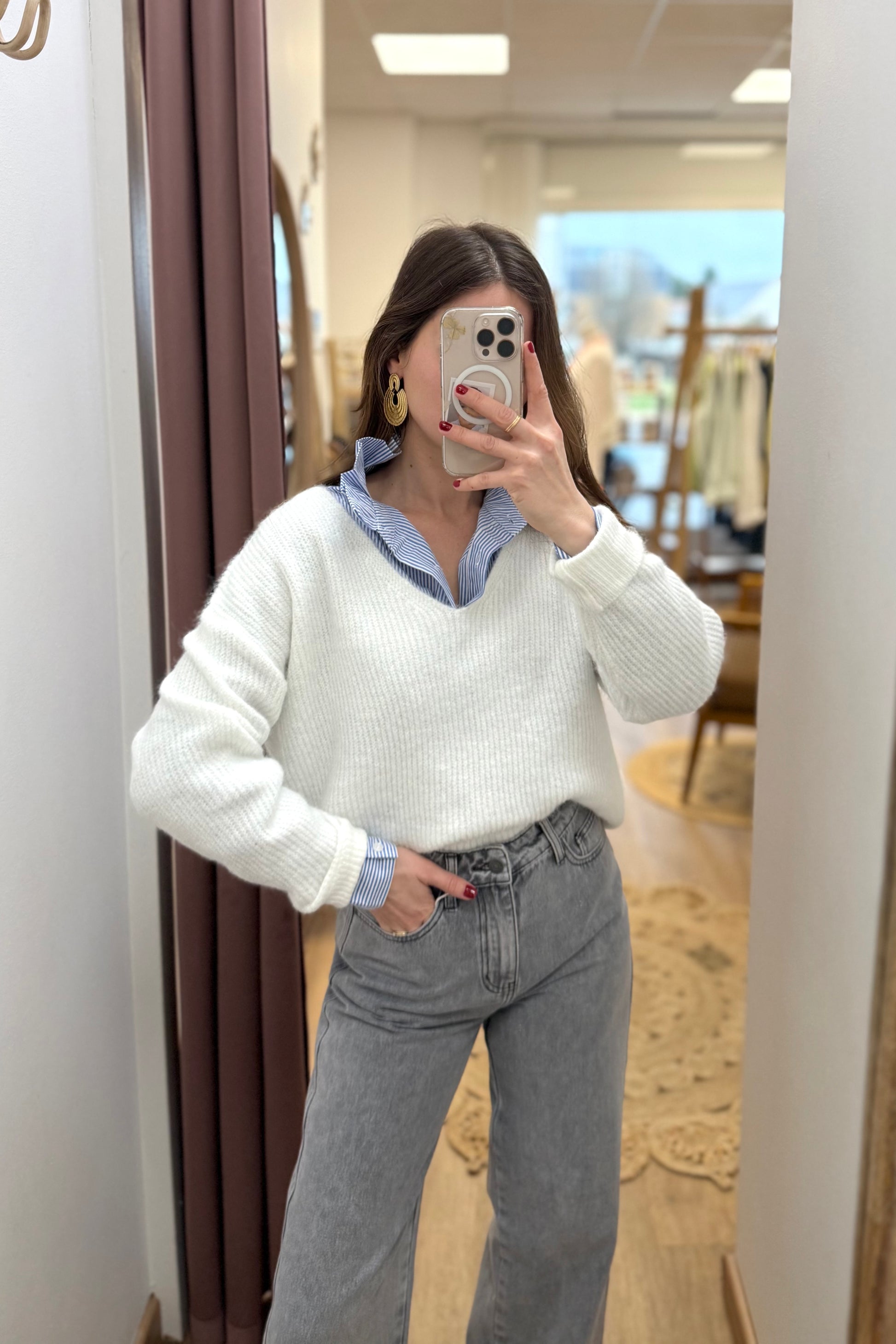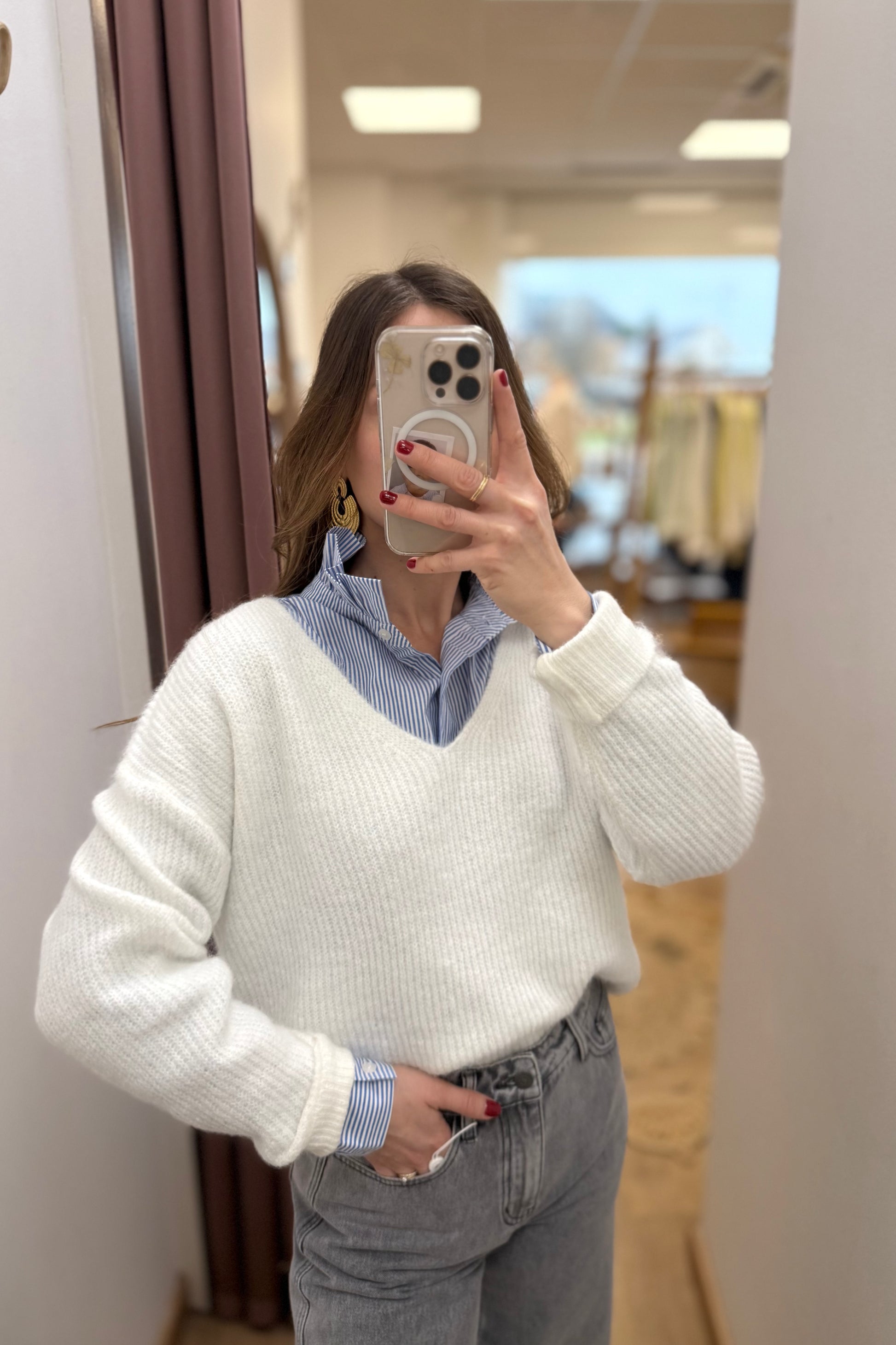- Pull coupe droite col V