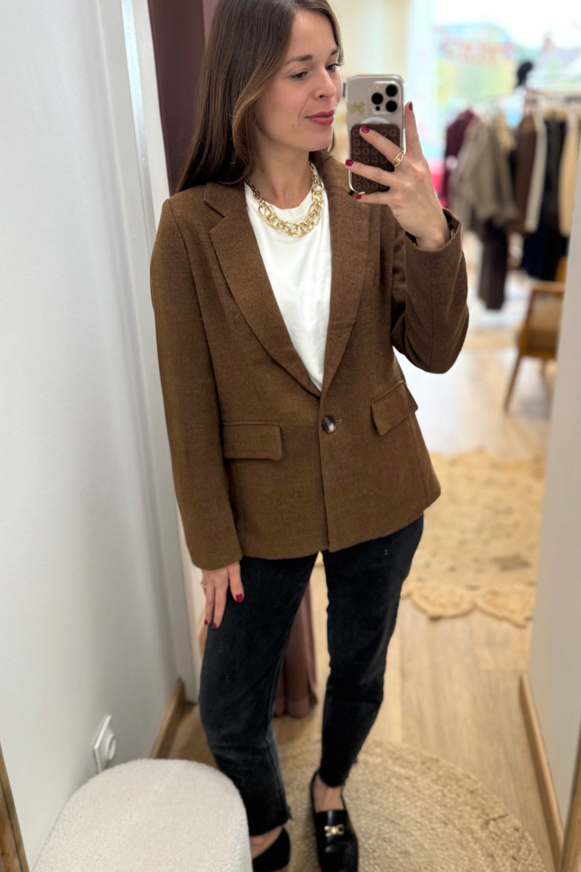 - Veste de blazer daim camel